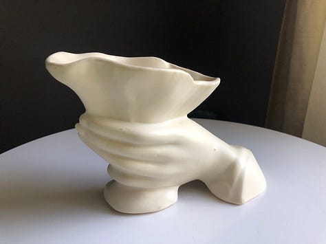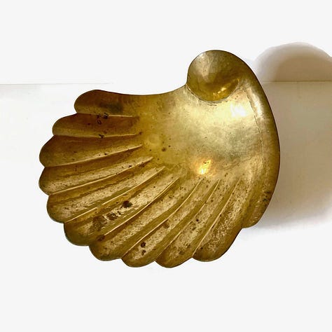 I’ve had homewares on the brain lately, too. I’m trying this new, fun thing where instead of getting stuck in an algorithm loop (that has me questioning if that really IS Jim Carey…) I’ll browse Etsy at night. Some recent finds include this cool ivory hand vase (very Wuthering Heights, no?), this Italian magazine rack, and this shell-shaped gold dish.